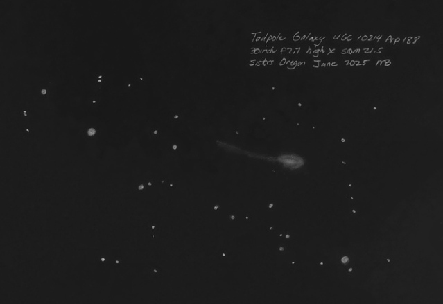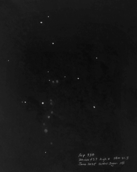 Arp 242 tidal stream (the Mice galaxies) with my 30 inch f2.7. These are small and easily overlooked because of their faintness.
