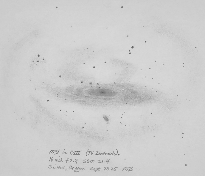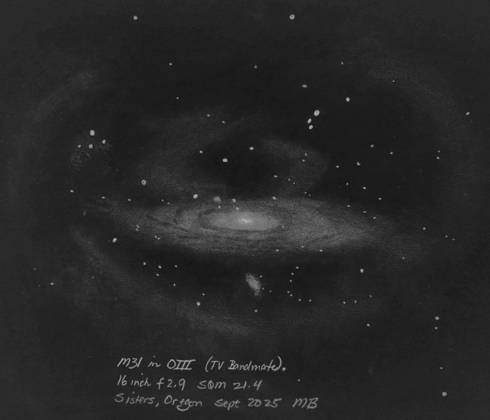 The Andromeda Galaxy with the TV Bandmate filter (OIII) as seen through the 16 inch f2.9.