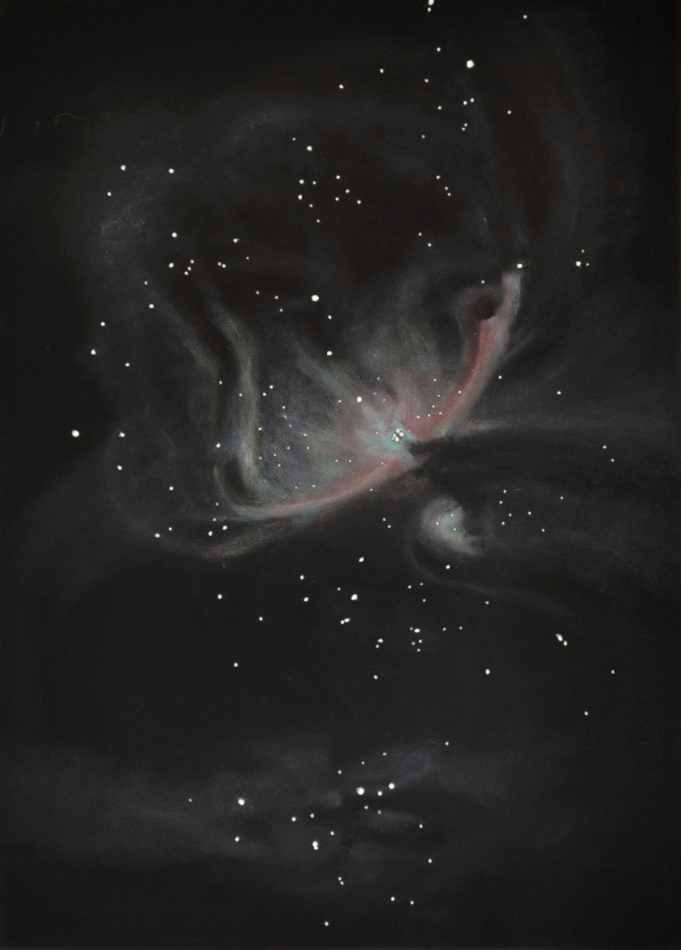 There's a dust belt to the west side of M42, the Orion Nebula with Barnard's Loop curving to the east and below. Two drawings with my 6 inch f2.8.