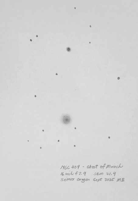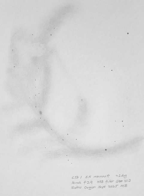 The Sivan 2 object: looks to be partially OIII. Drawn with the 16 inch f2.9.