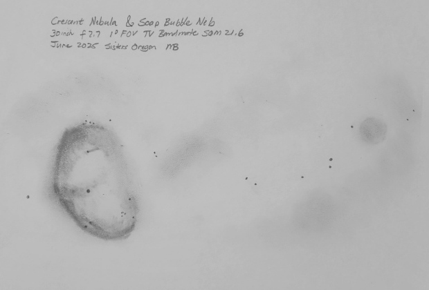 North of Albireo is the supernova remnant S-91 or G65.3 5.7. Fields sketched with my 10.5 inch f2.7 and my 13 inch f3.0.