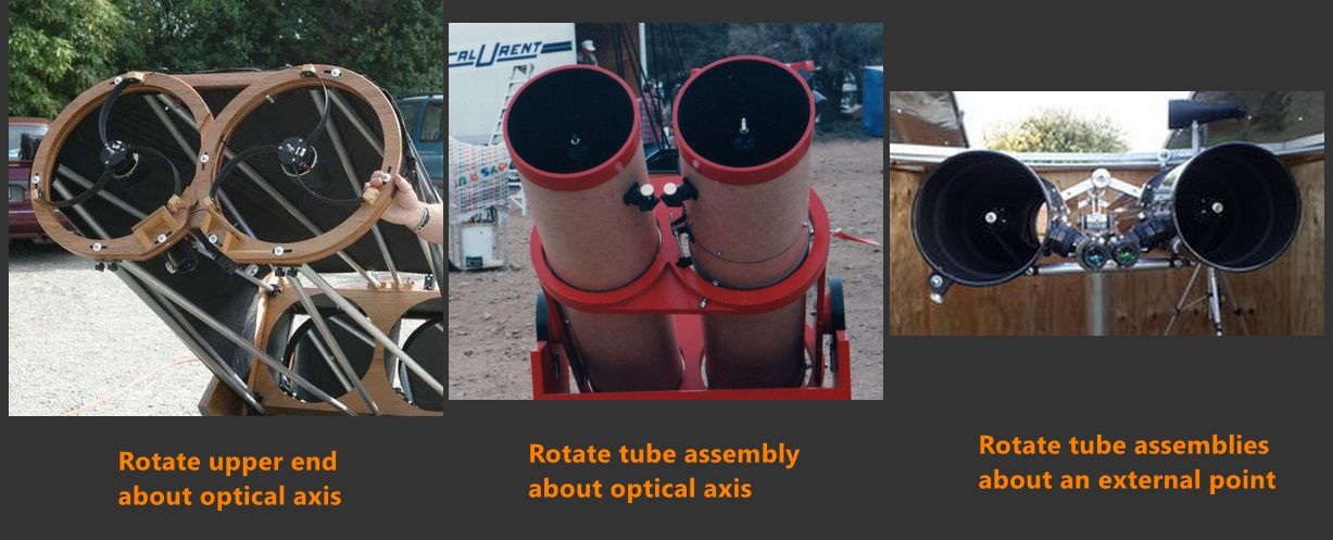 Both equatorial axes and both altazimuth axes intersecting is an optimized design. I strongly suspect that the designers started with less optimal designs where the equatorial portion of the transformer was below or at the side of the altazimuth portion. This takes us back into the rich sophisticated world of analog devices and mechanical linkages. It also gives the modern day amateur new design possibilities.