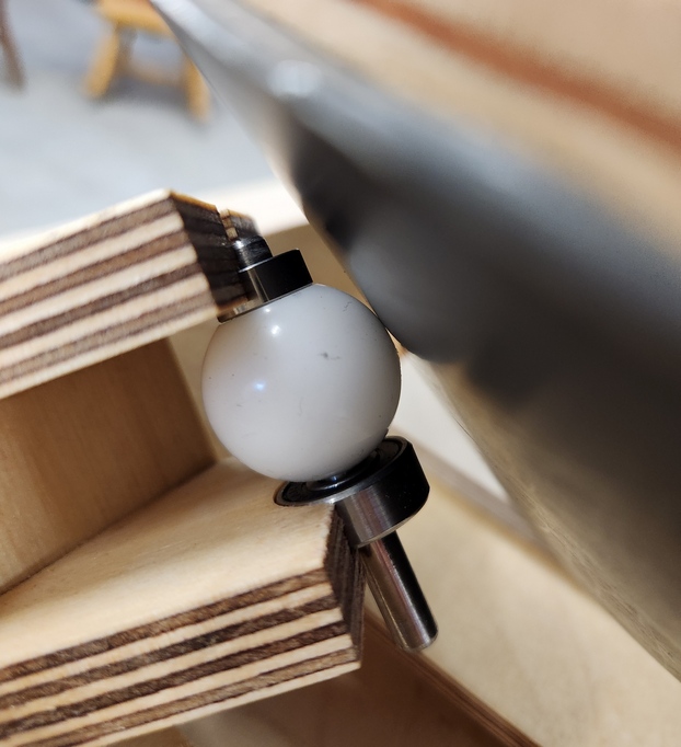 Jerry's mounting design could be trimmed down into a hemisphere, resulting in an equatorial table platform. For moderate latitudes the drive arm rises above the two rollers.